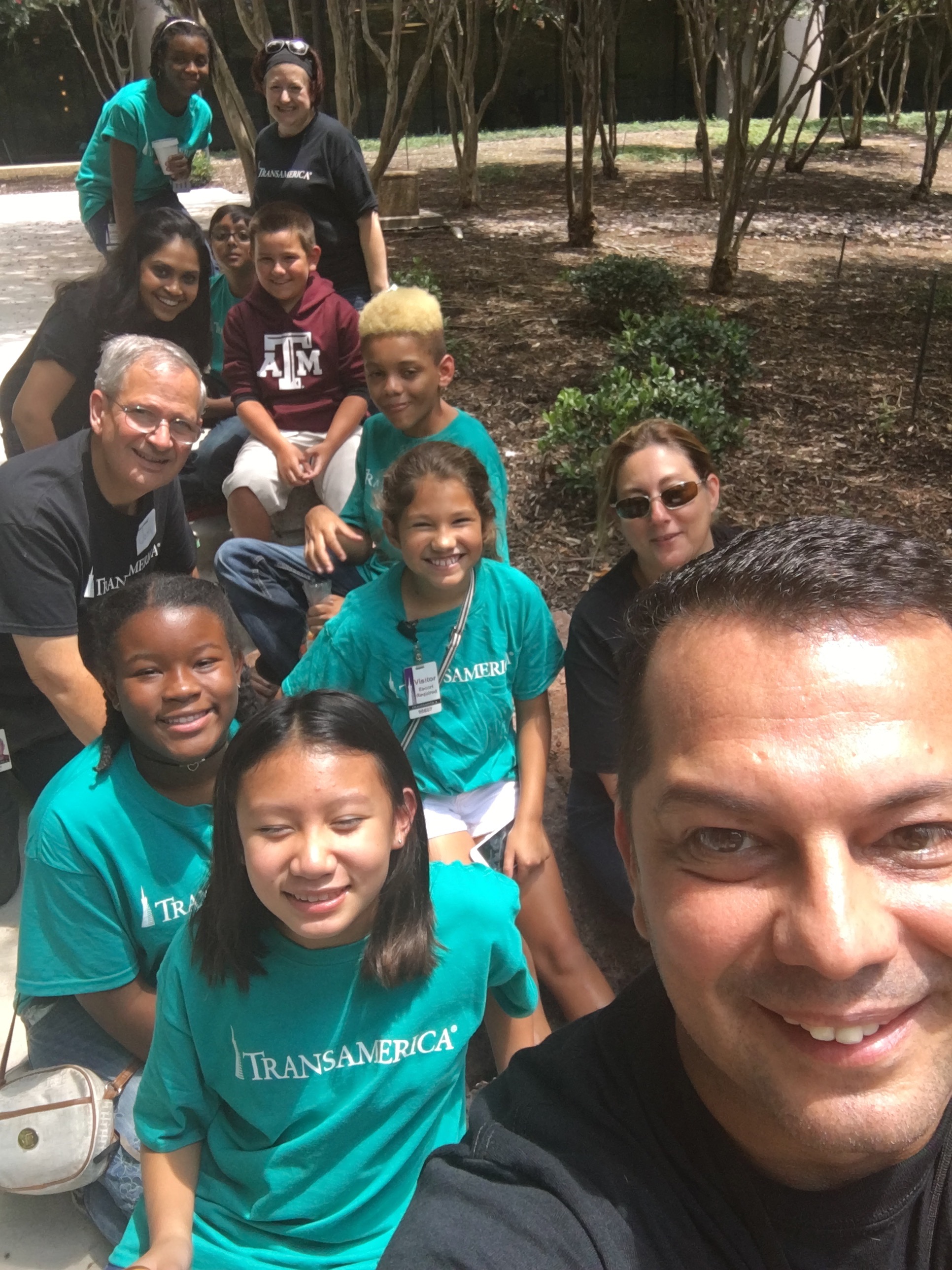 Staff of the Financial Literacy Coding Camp for Kids posing together with children of Transamerica employees.