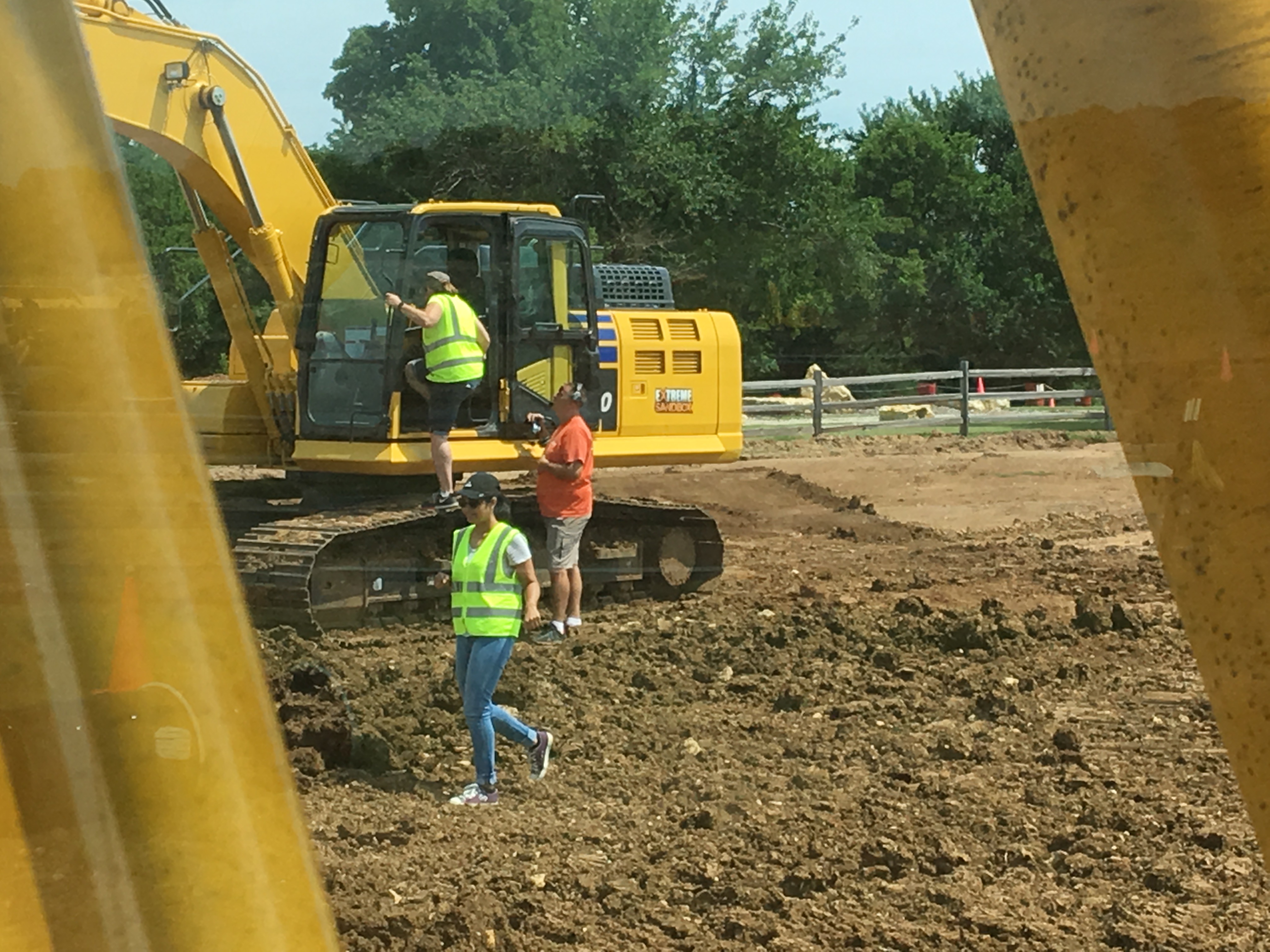 The team rotated through heavy equipment - driving a bulldozer, operating an excavator, and completing guided challenges (including taking out frustrations on an old car) in a safe, structured environment.